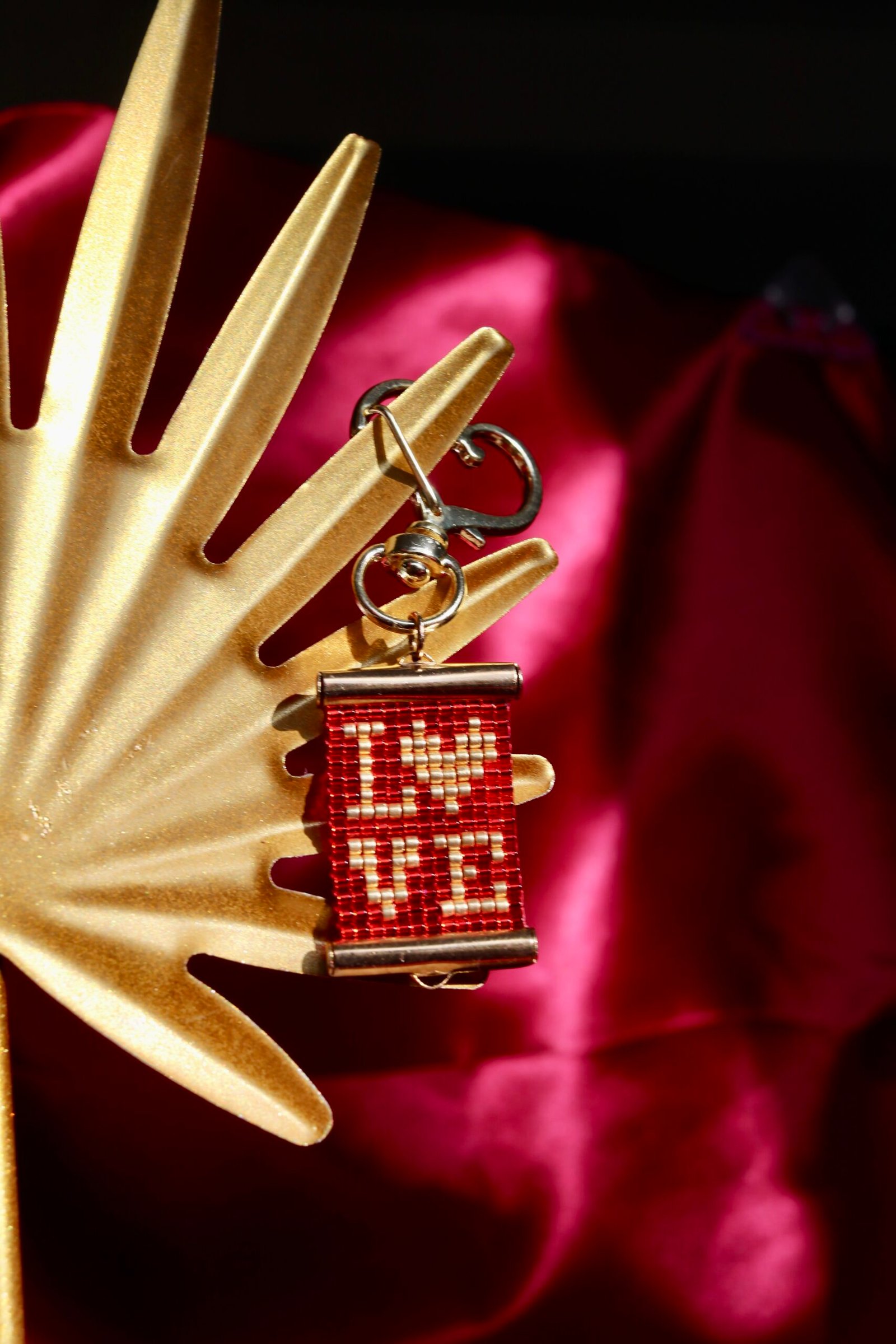 Déclaration d’amour miniature à emporter partout, Amor Rouge est un porte-clés délicat et lumineux, entièrement tissé à la main en perles Miyuki.